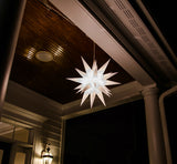 - WARM GLOWING MORAVIAN STAR LIGHT - This beautiful large 18" lighted Moravian star will shine through the night! Our bright white Christmas star makes the perfect lighted advent star for the holidays!